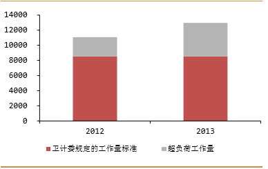 2012-2013年上海市区医院医生工作量超负荷情况(小时)