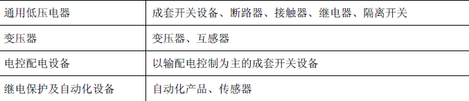 根据中国电器工业协会对行业的细分,高压开关、通用低压电器、变压器、电控配电设备、继电保护及自动化设备等细分行业的产品均属于输配电及控制设备的范畴。
