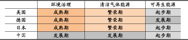 美国、德国、日本和中国在能源利用领域的发展阶段