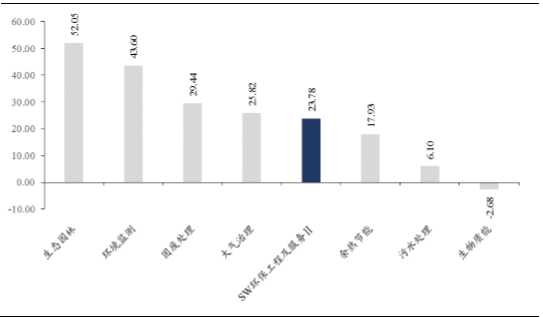 自2015年年初至中报披露结束的2015年8月31日,环保板块上涨23.78%,跑赢沪深300(-7.55%),跑输创业板指(35.68%)。子行业中生态园林、环境监测、固废处理、大气治理、余热节能、污水处理、生物质能分别上涨52.05%、43.60%、29.44%、25.82%、17.93%、6.10%、-2.68%。