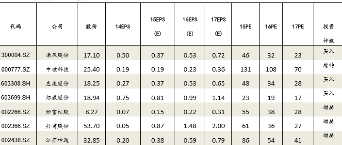 推荐标的盈利预测