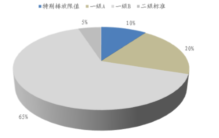 现有城镇污水处理厂中,敏感区域外约30%的污水处理厂(约1000座)目前未达到一级B标准,需要改造到一级B或二级标准;敏感区域内约53%的污水处理厂(约500座)未达到一级A标准,需要改造到一级A标准。改造完成后,全国约10%的污水处理厂执行特别排放限值,20%的污水处理厂执行一级A标准,65%的污水处理厂执行一级B标准,5%的污水处理厂执行二级标准。(水量也接近该比例)