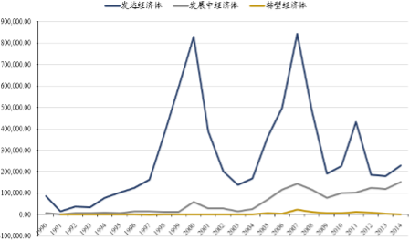 各种类型经济体海外并购金额(百万美元)