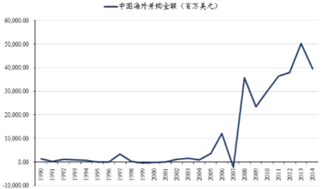 中国海外并购金额(百万美元)