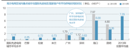根据《国家电网报》数据显示,2012年,北京城市户均停电时间是57分钟,而这一数据在巴黎仅为15分钟,东京为9分钟,与国际一线城市供电可靠性的差距非常明显。