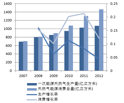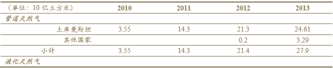 我国进口天然气包括进口管道天然气和进口LNG两种。进口LNG较早,在21世纪初便与澳大利亚签订了长期供气合同,随后又与印尼、卡塔尔、马来西亚、也门等国家签订供气合同;进口管道天然气开始较晚,始于2010年,管道的气源以中亚国家为主,未来有机会与俄罗斯合作。近几年管道气进口增长较快,2012年我国进口管道天然气221亿立方米,占全年进口天然气总量的51.7%,进口LNG206亿立方米,占进口天然气总量的48.3%。