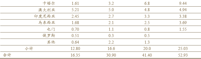 从来源国看,目前,我国天然气进口来源国主要为土库曼斯坦、卡塔尔、澳大利亚、印度尼西亚、马来西亚和也门。其中,中国LNG的主要进口来源国有卡塔尔、澳大利亚、印度尼西亚、也门和马来西亚,除此之外都是短期现货贸易或者转口贸易。卡塔尔是我国LNG的最大进口国,2013年我国从卡塔尔进口LNG占比为37.57%;管道天然气的主要进口来源国是中亚土库曼斯坦、乌兹别克斯坦、缅甸和哈萨克斯坦四国。其中,土库曼斯坦是我国管道天然气的最大进口国,2013年我国从土库曼斯坦进口管道天然气占比为88.22%。