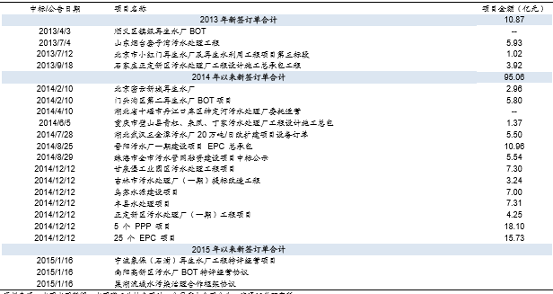 碧水源2013-2015年主要项目订单汇总