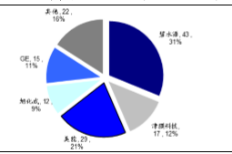 相比于中国污水处理市场高度分散的状况。再生水作为水务行业尚处于成长期的子版块,主流的膜工艺水处理行业尚属蓝海,参与者多为同时掌握滤膜和组件生产能力的企业。经过此前五年的整合,进口膜产品逐渐退出市场,GE膜仅用于工业治污领域,西门子已将膜资产出售,三菱已与碧水源成立合资公司无锡丽阳膜科技有限公司。截至2014年4月,中国水网调研13家主要MBR企业共有138个万吨级以上MBR项目。