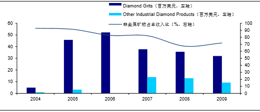 2004-2009年ILJin公司金刚石相关产品收入及占总比