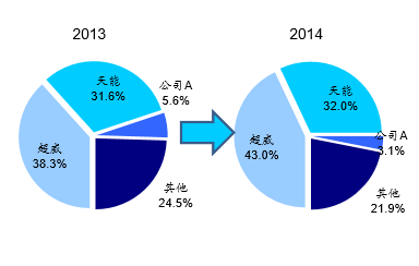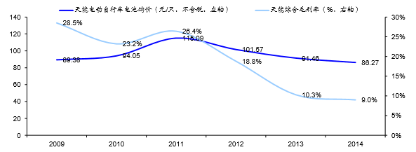 (2)行业两大龙头天能动力、超威动力市场份额持续上升,2014年合计市占率约75%,中小企业大量肃清,行业整合基本完成。