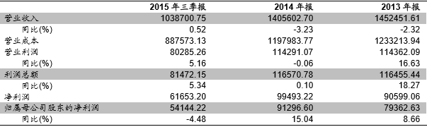 南山铝业是南山集团旗下唯一的上市公司平台,是集团在有色、建材板块的重要子公司。公司2015年前三季度实现营业收入103.87亿,同比增长0.52%,归属母公司股东的净利润为5.41亿,同比下降4.48%。
