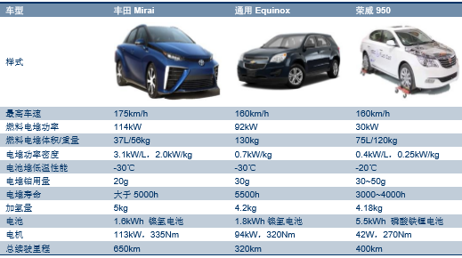 几款主流燃料电池轿车性能参数对比