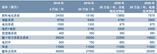 燃料电池轿车成本预测
