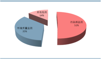 从环境监测的主体来看,环境监测产业分为环境质量监测(主要为大气和水)、污染源监测和其他监测(土壤、噪声、辐射、应急等)三个部分,其中,环境质量监测主要由各级环境监测站构成,而污染源监测则由主要排污企业的监控构成。目前我国各级环境监测站体系建设相对成熟,目前已经形成从中央到各省、地、市以及乡镇的监控体系,市场较为稳定。而污染源监测无论是覆盖面还是监测深度都有较大的发展空间,市场增量空间巨大。具体来看,目前污染源监测产业份额最高,其次是环境质量监测产业。