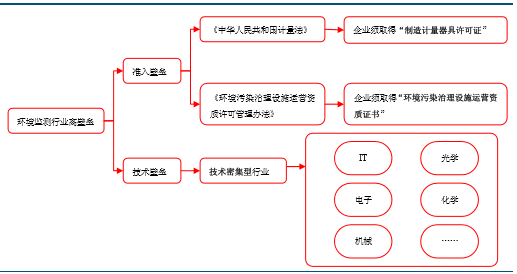 环保行业受政策、法规及监管的驱动,在环境诉求加强的情况下,尤其是进入“十三五”时期,国内环保市场已呈现出前所未有的高速发展趋势。环境监测作为环保产业的一个分支,也有近千亿元的市场潜力。环境监测产业链主要分为上游硬件、软件、检测试剂;中游监测仪器、监测系统以及下游仪器维护、设备运营。而随着有关环境监测服务社会化政策的出台,环境监测市场将逐步向社会开放,行业公司将由监测设备销售向提供环境监测服务转型。