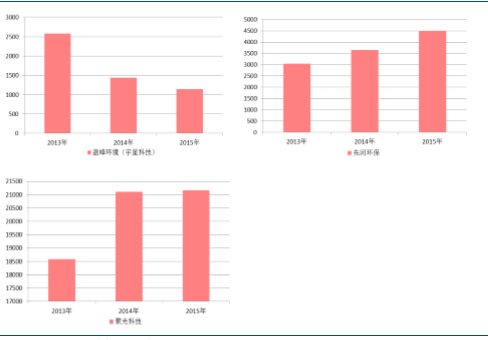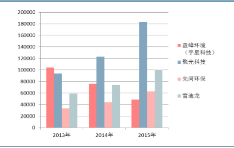 四大国内环境监测领头公司近三年营业收入图(单位:万元)