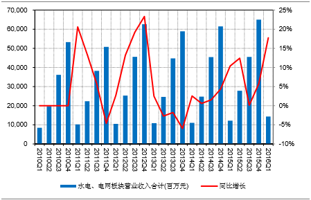 水电&电网板块近年来营业收入同比增长(季度数据)