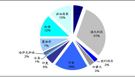 世界国家锌矿储量占比