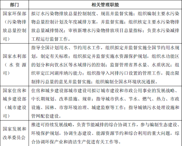 从事的污水处理和供水处理,既与环境保护中的水污染治理相关,又涉及水资源保护和城市基础设施建设。因此,公司受各级环保部门的监督管理,同时也受到水利、城乡建设等相关主管部门的管理。水处理行业相关主管部门职能详见下表: