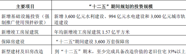 根据国家统计局数据,我国的城市化率从2001年的38%上升到2012年的53%。得益于我国城市化水平的提高,建筑材料行业迅速发展,消费者对建材的环保要求也越来越高,带动了非离子型纤维素醚在建材领域的需求量。按照国家“十二五”期间的相关发展规划,将重点投资的建筑领域包括:固定资产投资、新建商品住宅、保障房、既有建筑物节能改造、工业建筑、商业建筑、装修等。如下表。