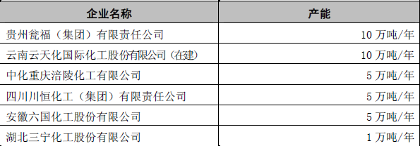 我国热法磷酸2010年产量为258万吨,而能替代其效能的湿法净化磷酸只有以下产能: