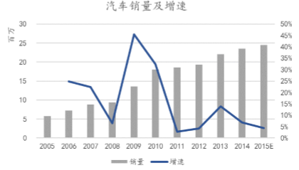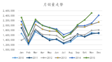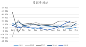 2015年Q2以来,受宏观经济环境不景气影响,汽车销量保持了两个季度的负增长。随着Q4开始的1.6L免购置税政策的实施,汽车销量连续两个月强势反弹,我们认为在国家调结构、稳增长的大趋势下,汽车销量有望保持低速增长。