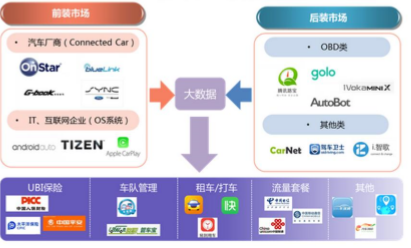 智能汽车数据运营带来众多新的商业模式。汽车分前装市场和后装市场,无论是汽车厂商主导的前装市场,还是互联网厂商所引领的后装市场,其核心价值都是数据。基于各类硬件、软件APP收集的数据需要传输到云端进行数据汇总、数据分析等工作,并最终衍生出UBI保险、OTO、位置服务、车队管理等众多新的商业模式。