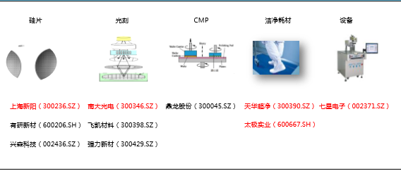其次,从小到大的发展路径,以掩膜版、光刻胶、CMP材料等国内已有一定基础、部分实现国产化的材料为例,或是受益于外包比例增加的行业趋势、或是随着国内企业研发和产业投入增加,越来越多的优秀人才加入,各种材料领域中均涌现出优秀企业在高端工艺应用中取得突破,逐步实现国产替代。