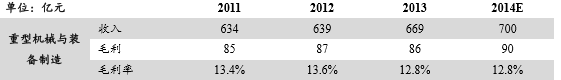 2014年重型机械与装备业务约占集团收入18%,即收入700亿元左右,版块毛利率约13%。重型机械与装备业务主要产品包括重型汽车、铁路货车、矿用车、火车轴、汽车零部件及部分军品。