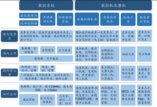 此外,即使放眼全球,也仅有少数几家厂商具备自主研发并生产数控系统能力,机床企业大多依靠专业厂商为其提供数控系统产品。因此,除了机床整机制造的产业链之外,数控系统自身又形成了一条包含软硬件装置、伺服驱动系统和各类传感器及检测设备的产业链。