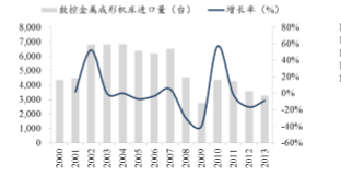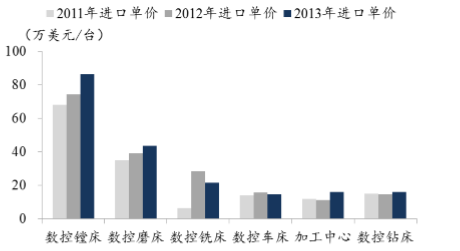 数控金属切削机床进口情况:50%量是加工中心,镗床与磨床附加值较高。