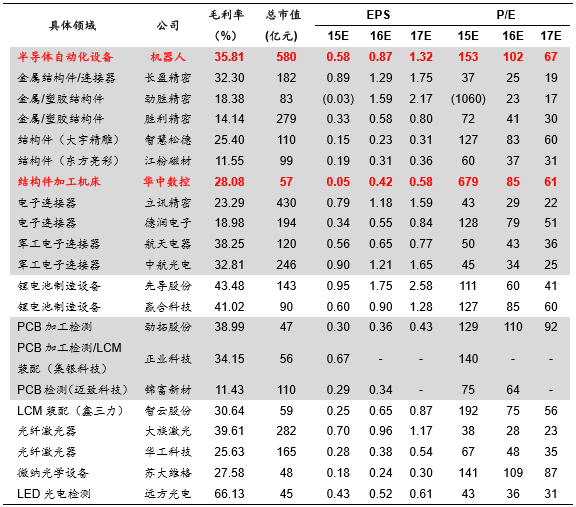 通过对3C产业各领域中的设备供应商的分析,我们发现: