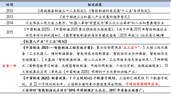 政策持续催化:2016年《中国制造2025》配套政策将批量出台