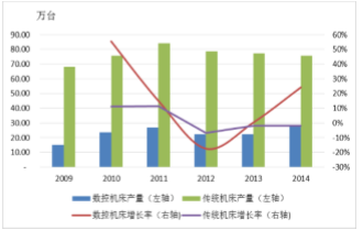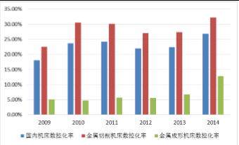 2013年我国国内机床产值约为6400亿元,2014年我国机床数控化率在25%左右,按以上数据,我们粗估2014年我国数控机床的市场在1600亿元左右,并呈现稳步上升趋势。《中国制造2025》规划中国制造业关键工序数控化率5年内翻倍达到64%,对我国发展数控机床推动明显。若2020年我国机床的数控化率能达到50%,则我国数控机床市场至少在3000亿以上,且未来5年数控机床市场将呈现CAGR15%左右的快速增长。