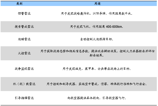 军用雷达作为获取多空间、全天候战略战术情报的重要手段,是重要的传感器,在执行军事任务中是不可或缺的。分析报告由于雷达种类繁多,分类方法也很复杂。按雷达信号形式分类,有脉冲雷达、连续波雷达、脉部压缩雷达和频率捷变雷达。按天线扫描方式分类,分为机械扫描雷达、相控阵雷达等。