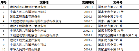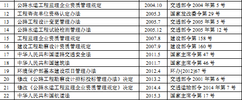 我国交通工程咨询行业的法律体系主要由基本法律、行政法规、部门规章和自律制度构成。目前对发行人所从事的工程咨询业务较为重要的法律法规如下: