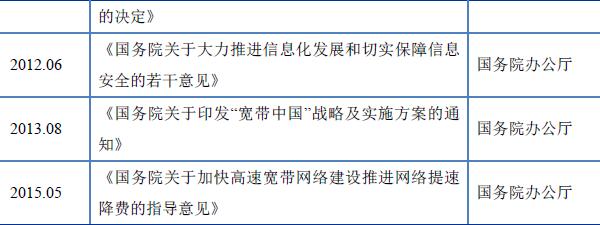 (3)《国务院关于印发“宽带中国”战略及实施方案的通知》