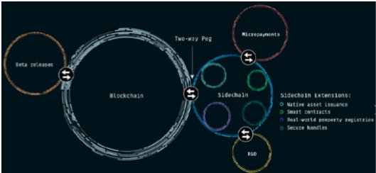 侧链:在主区块链之外的另一区块链,锚定与主区块链的一个节点,并 可以与主区块链进行一定的数据交互