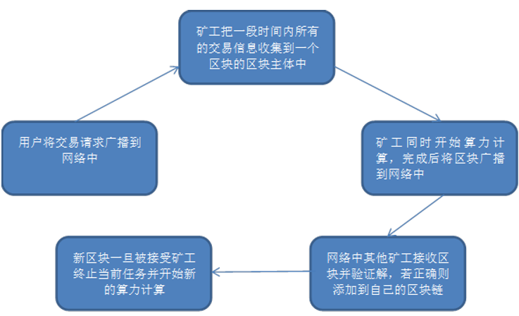 挖矿:矿工通过一套算力竞争机制竞争权利并努力生成区块的过程。矿 工在挖矿成功的同时能过获得一定的报酬。