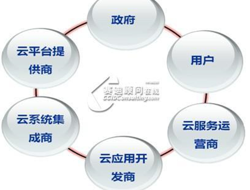 根据赛迪顾问的研究,在目前的云计算产业链中,共有六类角色:政府、云系统集成商(IaaS)、云平台提供商(PaaS)、云应用开发商(SaaS)、云服务运营商和终端用户。