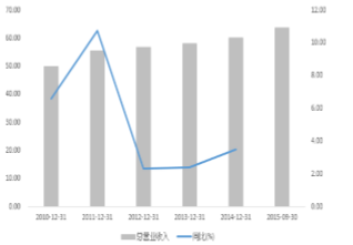 2010-2015Q3营业收入及增长率