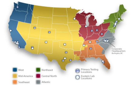 LabCorp在美国的独立实验室分布