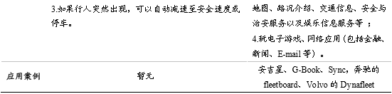 V2X(VehicletoEverything)车联网在概念上是物联网面向应用的实现,同时也是对D2D(DevicetoDevice)技术的深入研究过程。所谓V2X车联网,指的是汽车车辆之间,或者汽车与路边行人、骑车者以及汽车与基础设施之间的通信系统。车联网利用装载在车辆上的RFID(RadioFrequencyIdentificationDevices)、传感器、摄像头图像处理获取车辆的行驶情况、系统运行状态信息及周边道路环境信息,同时通过GPS定位获得车辆位臵信息,并通过D2D技术将这些信息实现端对端的传输,在整个车联网系统中实现信息的共享,并通过对这些信息的分析与处理,及时对驾驶员进行路况汇报与警告,有效避开拥堵路段选择最佳行驶线路。