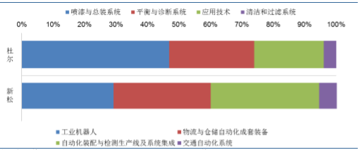 国内系统集成企业通常并不局限于某种工艺,但是主要专注于某个行业。只有集成能力最强的新松,可以跨出汽车行业拿到其它行业的很多订单,当然新松除了系统集成业务,还有物流与仓储成套设备和交通自动化系统等业务。在业务多元化方面,新松和杜尔类似。
