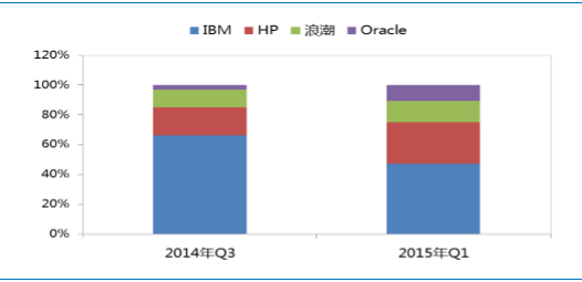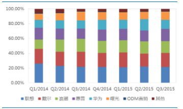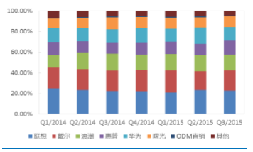 中国X86服务器市场2014年Q1-2015年Q3出货量仹额