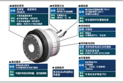 谐波减速器由波发生器、柔性齿轮和刚性齿轮三个基本构件组成,是一种靠波发生器使柔性齿轮产生可控弹性变形,并与刚性齿轮相啮合来传递运动和动力的齿轮传动。