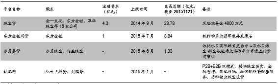 目前已上线运行的珠宝垂直P2P网贷众多,包括:金一文化、东方金钰和萃华珠宝等合资的珠宝贷、东方金钰旗下的东方金钰网贷、以及依托实体市场的水贝易贷和结合网上B2B珠宝销售的钻库网。珠宝垂直P2P平台大多依托珠宝行业上市公司资源或实体市场资源以获取行业资金需求,同时具备行业专业经验已进行风控管理。