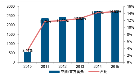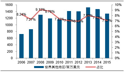 从市场结构来看,新兴市场依然保持活力。利丰欧洲业务下滑相对严重多出于欧洲因政治、战争等客观因素导致的整体经济低迷所致,同时利丰在全球范围依然存在新的经济增长点:利丰在美国市场的业务下滑并不明显,相比2011年,利丰2015年于美国收入仅下降2.74%,而美国是利丰的最主要市场,占比高达62%。同时,利丰亚洲及世界其他地区的收入合计占比20%以上,仍保持上升趋势。