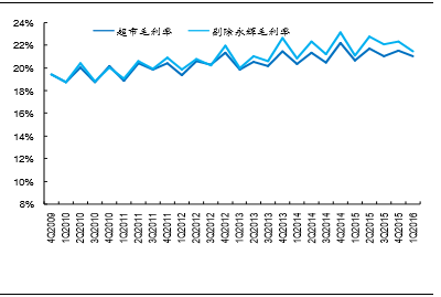 超市业态毛利率2016年整体中枢继续上移